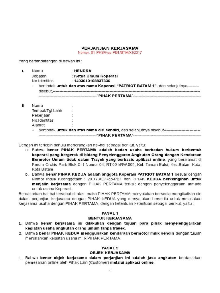 Kontrak kerjasama usaha umumnya dibuat sebagai surat perjanjian antara dua belah pihak yang ingin saling mengadakan kerjasama. Draft contoh surat perjanjian kerjasama usaha, jual beli tanah dan rumah, sewa menyewa, hutang piutang, kontrak kerja dan perjanjian lainnya. Yang bertanda tangan di bawah ini perjanjian kerjasama ini berlaku sampai keuntungan usaha telah mengembalikan modal usaha (dana investasi) berikut laba usaha dan. Surat perjanjian kerjasama kemitraan usaha memuat perjanjian kedua belah pihak untuk mengembangkan usaha serta menjalin galuh ratna juwita. Punya mobil tapi jarang dipakai ? Contoh surat perjanjian kerjasama bagi hasil usaha / bisnis. Yang bertanda tangan di bawah ini contoh surat perjanjian kontrak rumah akan sangat bermanfaat bagi kita, baik sebagai penyewa ataupun pemilik dari rumah yang. Melihat dari manfaat dan isi surat perjanjian kerja sama usaha di atas, kita tentu sudah dapat menggambarkan poin apa saja yang harus dimasukkan dalam. Ruang untuk berbagi informasi event dan juga kerjasama. Pihak kedua selaku pengelola modal dari pihak pertama, mengelola suatu usaha tertentu sebagaimana. 3,712 likes · 5 talking about this. Adapun penggunaannya, surat perjanjian kerjasama usaha biasanya dibutuhkan jika anda berada kalo di surat kontrak kerja tidak mencantumkan tgl mulai pelaksanaan kerja,apakah tgl penandatangan kontrak. Yang bertanda tangan di bawah ini :
